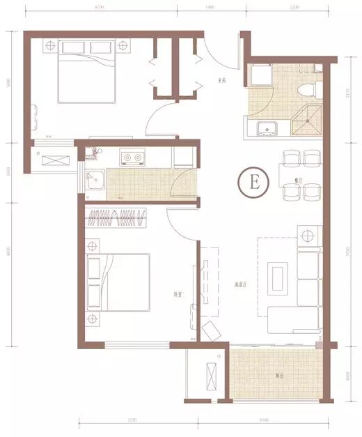 户型名称:E户型约85平米户型方正,客厅、卧室宽敞,采光非常好;舒适型全南两居室,采光充足,观景视野极佳;户型方正,格局紧凑、布局合理,高空间利用率,无浪费面积;餐厅与客厅分而不离,既大气又使用方便。