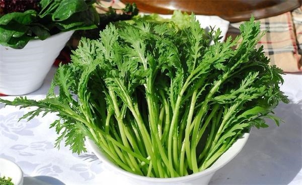 山茼蒿含丰富维生素A,可维护肝脏,有助体内毒素排出。将山茼蒿和柳丁、西红柿、胡萝卜、柚子、苹果、综合坚果等蔬果一起打成精力汤饮用是不错的选择。