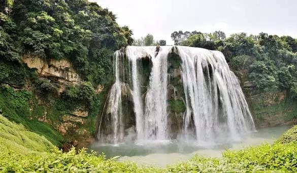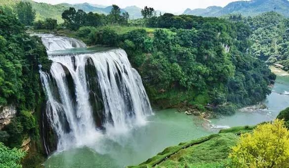 时而倾盆大雨,时而烟雨蒙蒙,如丝带一般飞泻着的瀑布水流与碧绿交织,惊艳的美!