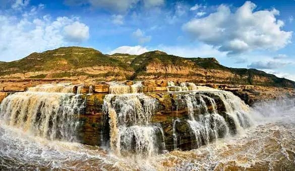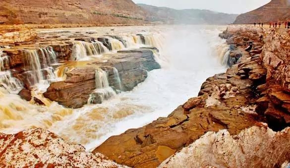 黄河壶口瀑布声如雷鸣,气势壮观,它以排山倒海的独特雄姿著称于世,是世界上最大的黄色瀑布。