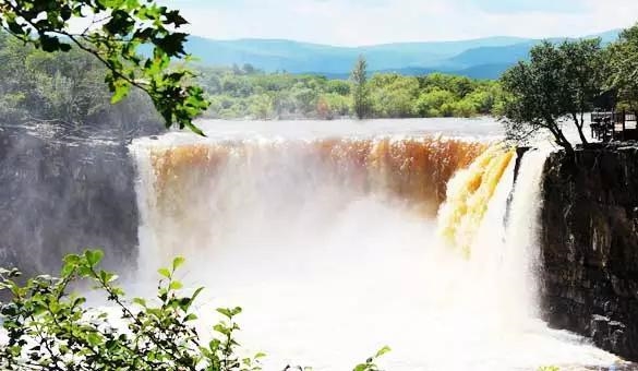 呼啸奔腾的湖水漫过平滑的熔岩床面,从断层峭壁上飞泻而下,在丰水期时形成宽达二三百米、落差二十多米的大瀑布,浮云堆雪的奇景让人看了就激动。