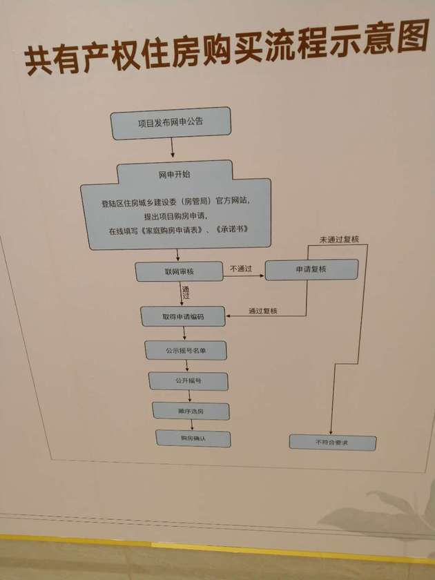 北京一项目现场张贴的共有产权房购买流程 图片来源:每经记者 王佳飞 摄