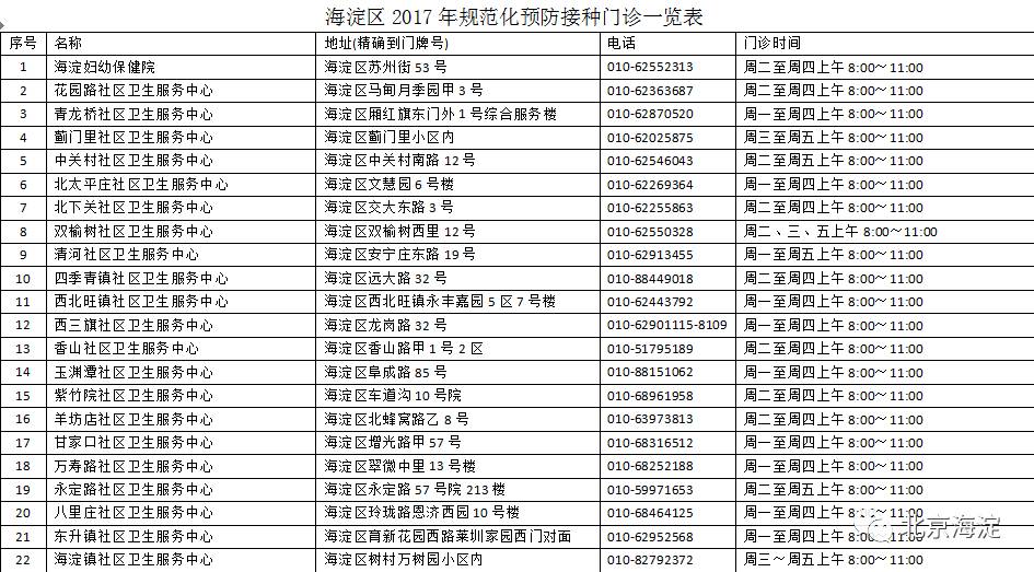 儿童预防接种可不是小事儿!宝爸宝妈们快来学习(附海淀区84家预防接种门诊详细地址)